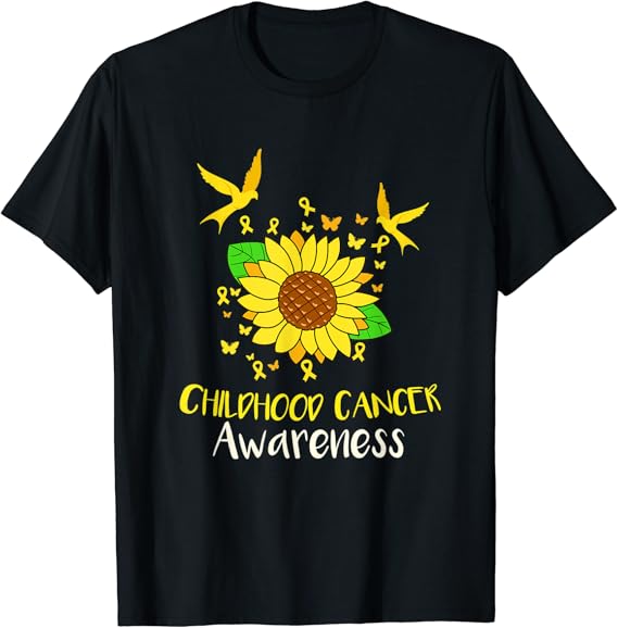 What Flower Represents Childhood Cancer - Childhood Cancer Awareness Flower Butterfly Gold Ribbon shirt : Black and light blue ribbon.